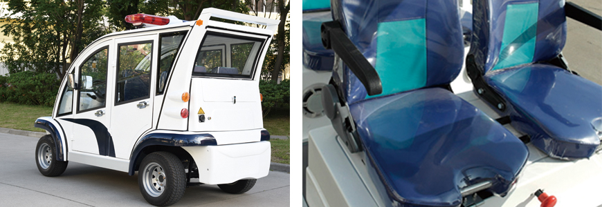 402JFB電動巡邏車,整車采用觀光車車頭,游艇玻璃鋼材質(zhì),線條流暢,新穎美觀、前后液壓制動,效果好、性能穩(wěn)定。